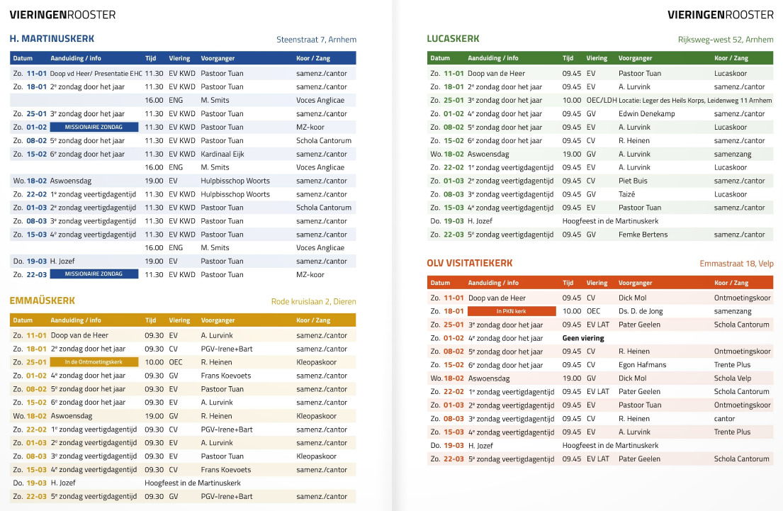 Overzicht vieringen van 11 januari t/m 22 maart 2026